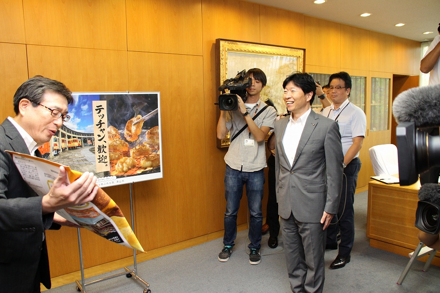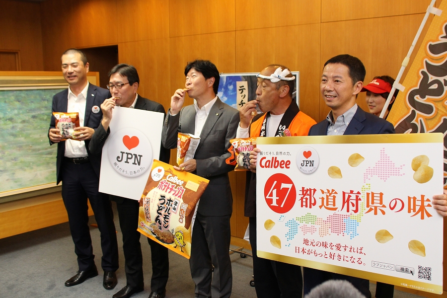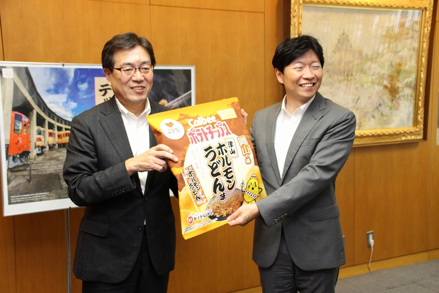 カルビーポテトチップス津山ホルモンうどん味 発売に係る表敬訪問 (15時00分 知事室) |