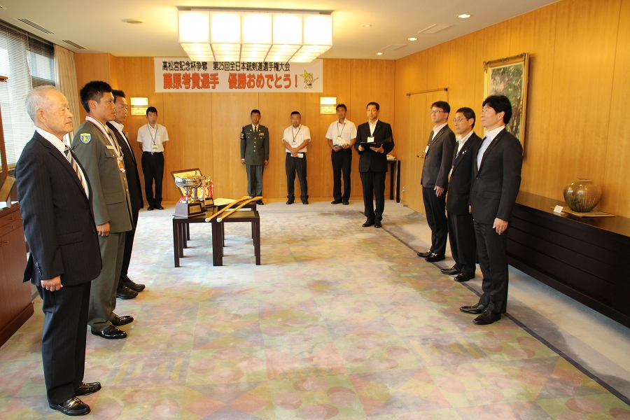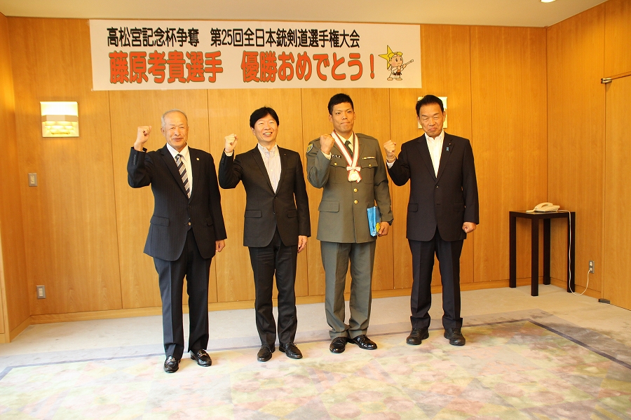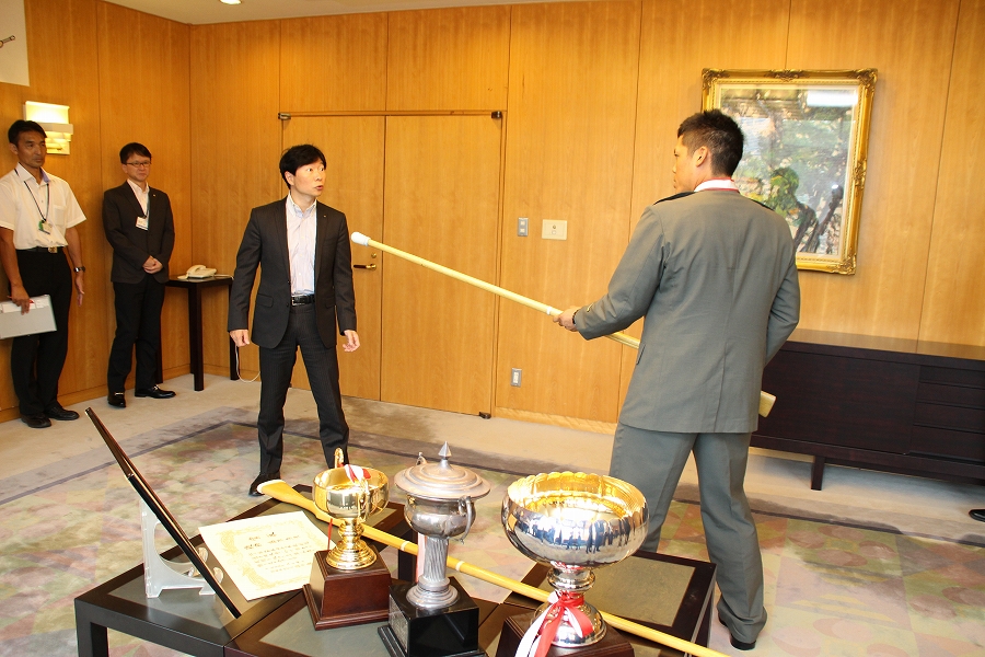 全日本銃剣道選手権大会優勝 藤原考貴選手 表敬訪問 (11時30分 特別応接室) |