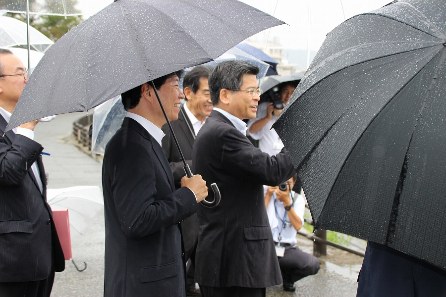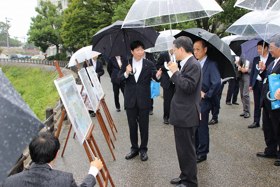 石井啓一国土交通大臣視察対応 (10時20分 石山公園界隈) |
