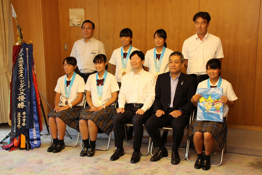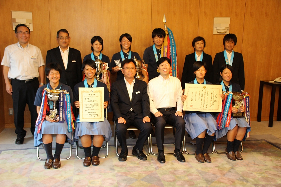 インターハイ優勝校・選手(創志学園高等学校女子ソフトボール部・岡山学芸館高等学校テニス部 平田 歩さん)表敬訪問 (15時40分 特別応接室) |