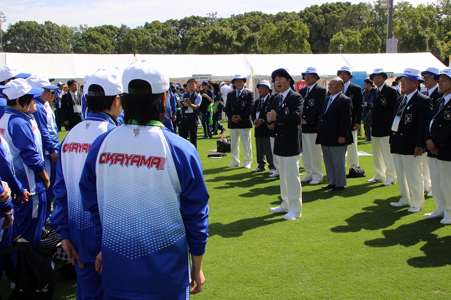 第72回国民体育大会(愛顔つなぐえひめ国体)総合開会式〔岡山県選手団激励〕 (10時50分 愛媛県総合運動公園陸上競技場) |