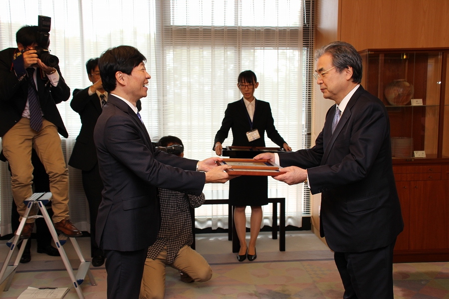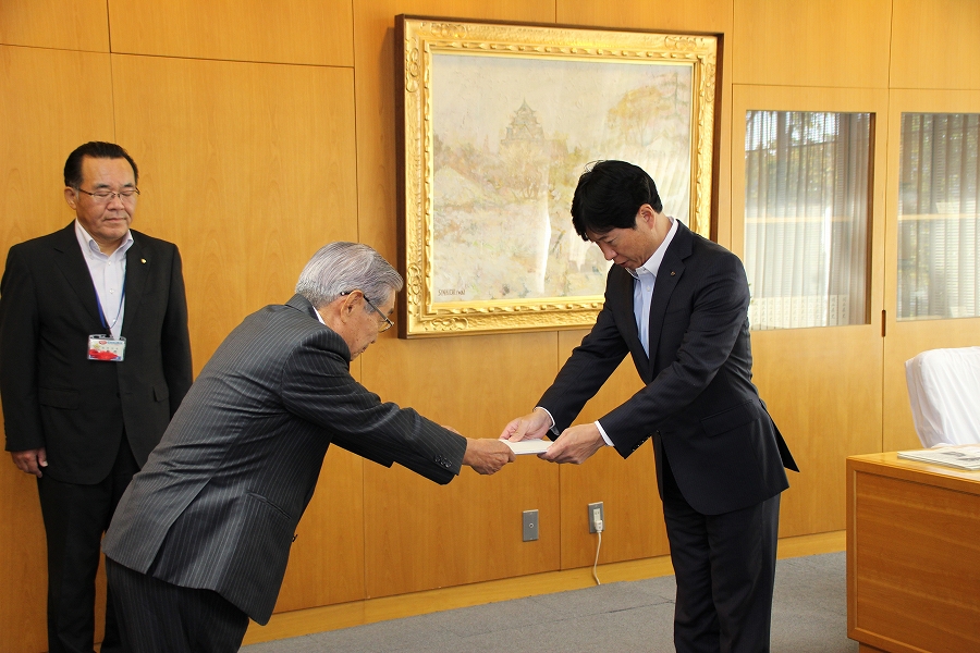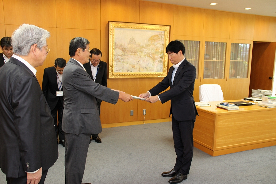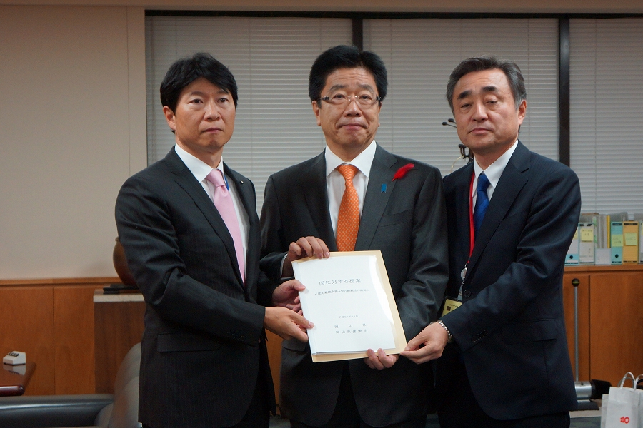 岡山県税制懇話会報告書の受取 (11時00分 知事室) |