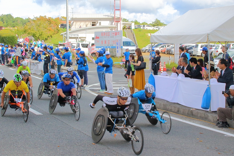 岡山吉備高原車いすふれあいロードレース〔出発式〕 (9時35分 国立吉備公園職業リハビリテーションセンター) |
