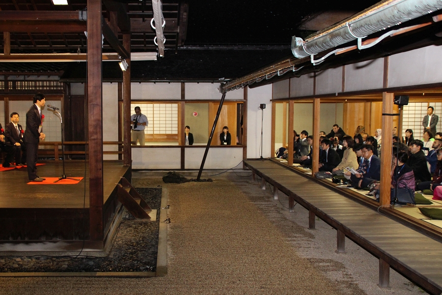「持続可能な観光国際年」記念国際観光シンポジウムに係る岡山市主催レセプション〔開会式〕 (18時30分 岡山後楽園(能舞台)) |