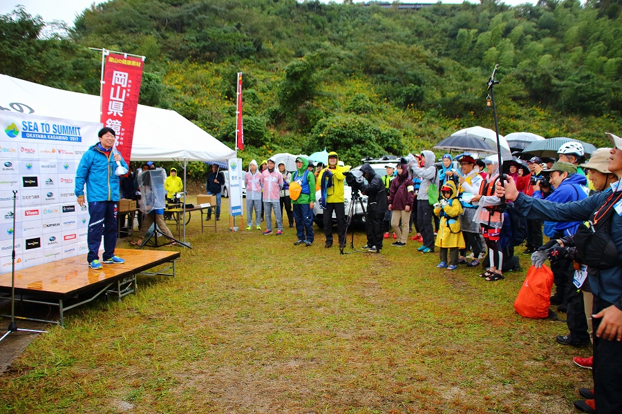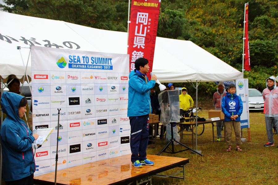 環境スポーツイベント「SEA TO SUMMIT」岡山鏡野大会〔スタート式〕 (6時50分 みずの郷奥津湖湖畔広場) |