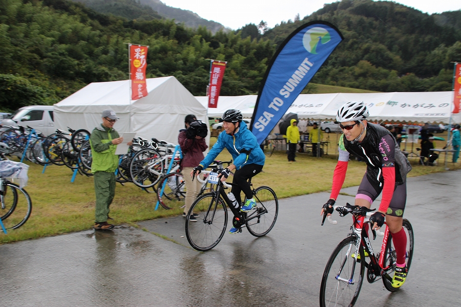 同左〔自転車ステージフィニッシュ〕 (9時15分 奥津温泉花美人の里付近) |