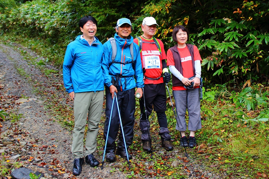 同左〔ハイクステージ下山・チーム記念撮影〕 (12時45分 笠菅峠) |