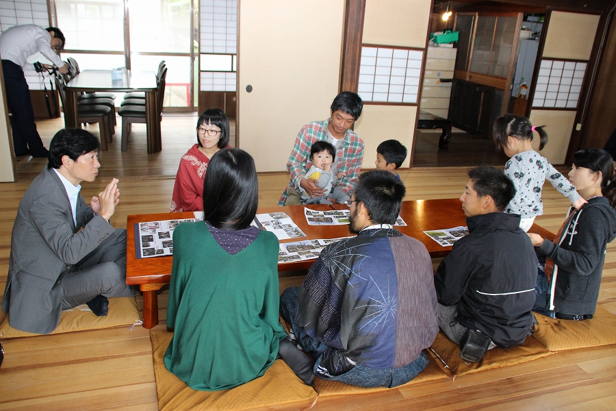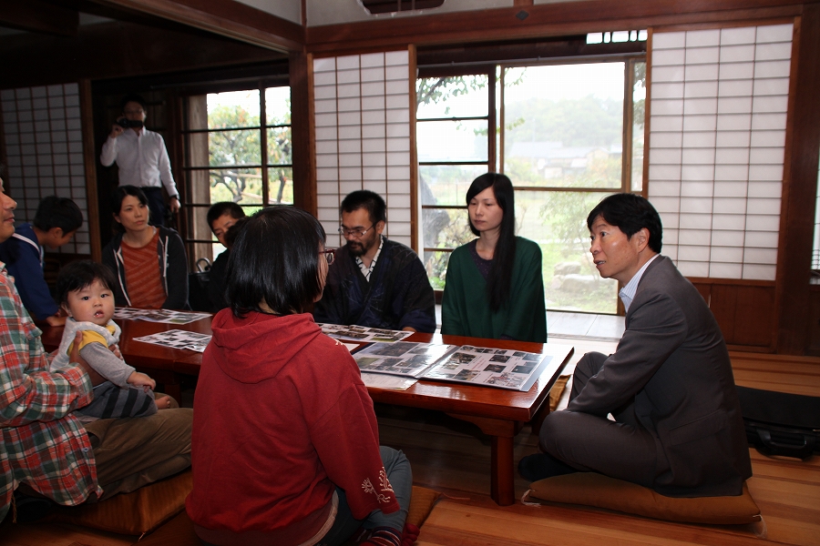知事と一緒に生き活きトークに先立つ現地視察〔移住者との懇談〕 (13時00分 裳掛あけぼのの家(瀬戸内市邑久町)) |