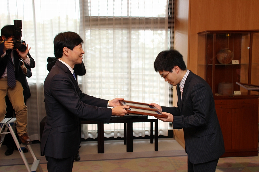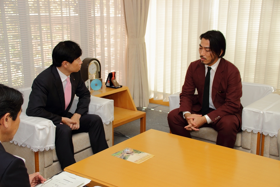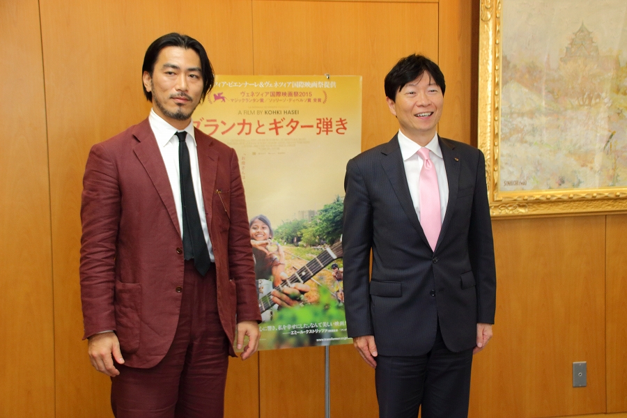 映画「ブランカとギター弾き」長谷井宏紀監督表敬訪問 (14時05分 知事室) |