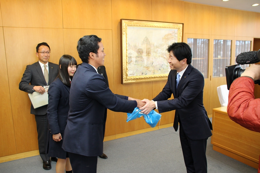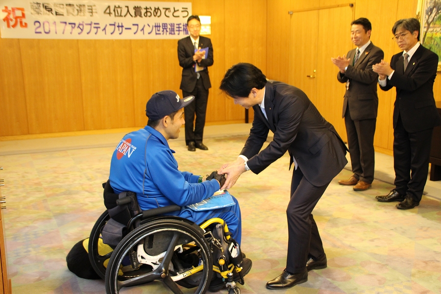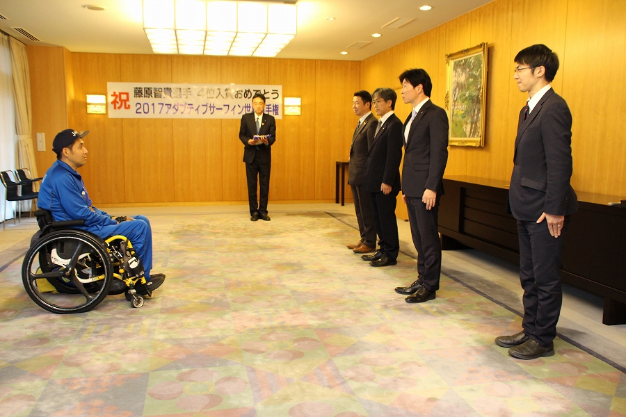 アダプティブサーフィン(障害者サーフィン)世界選手権4位入賞 藤原智貴選手表敬訪問 (15時45分 特別応接室) |