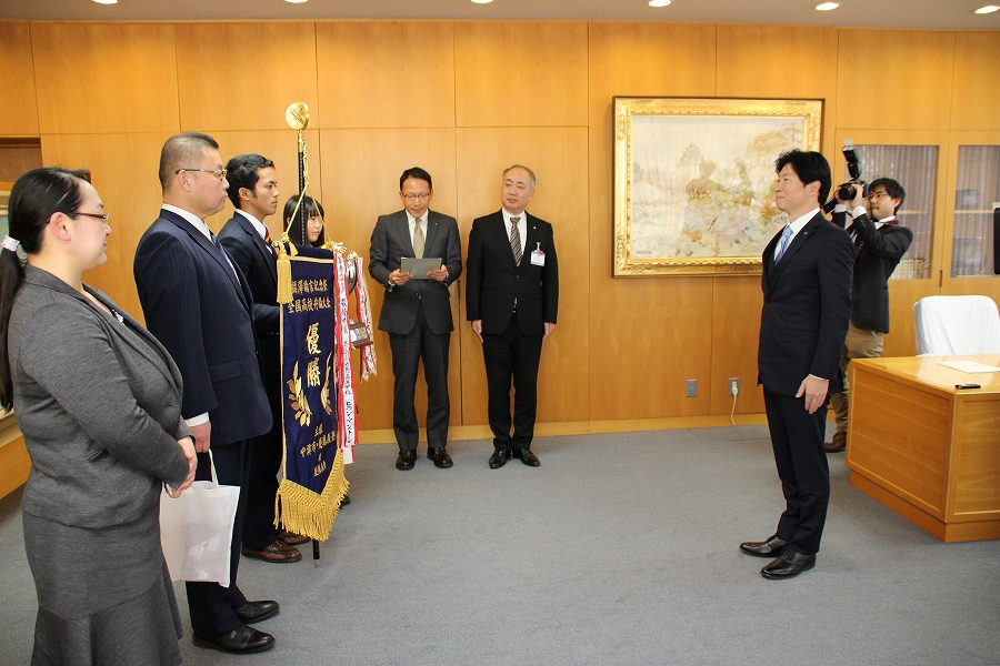 おかやま山陽高等学校スピーチ部全国弁論大会優秀成績生徒表敬訪問 (13時20分 知事室) |