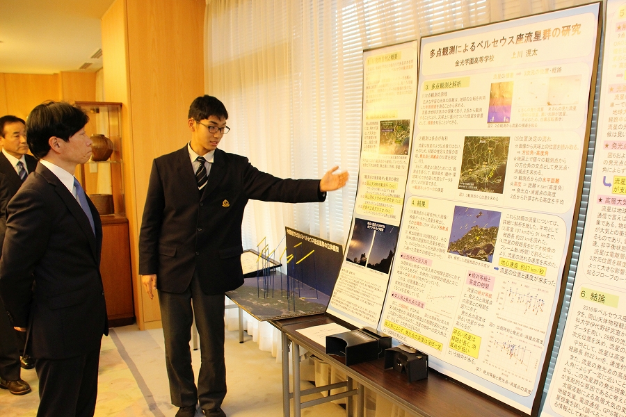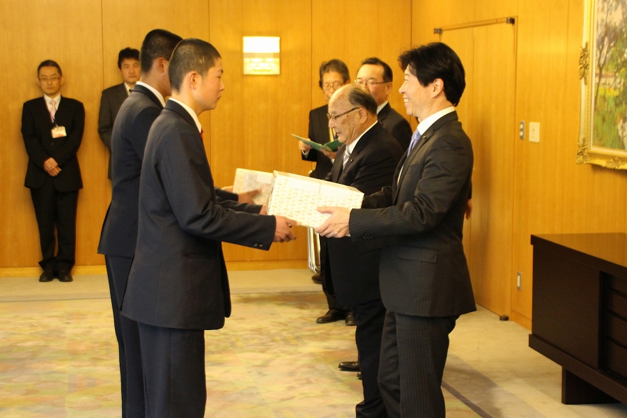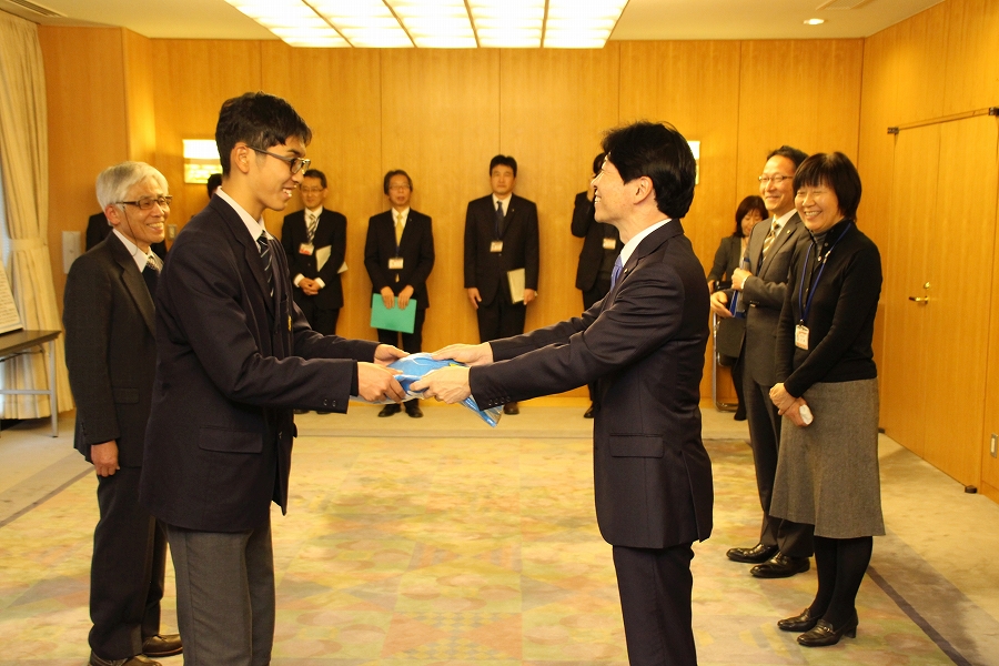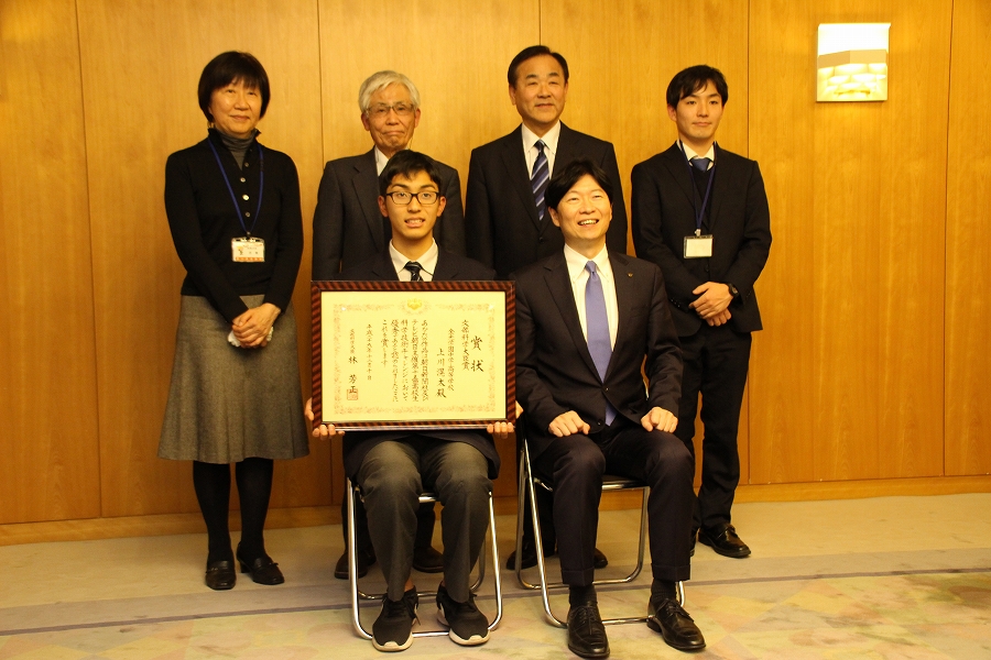 高校生科学技術チャレンジ文部科学大臣賞受賞 上川滉太さん(金光学園高等学校)表敬訪問 (15時30分 特別応接室) |