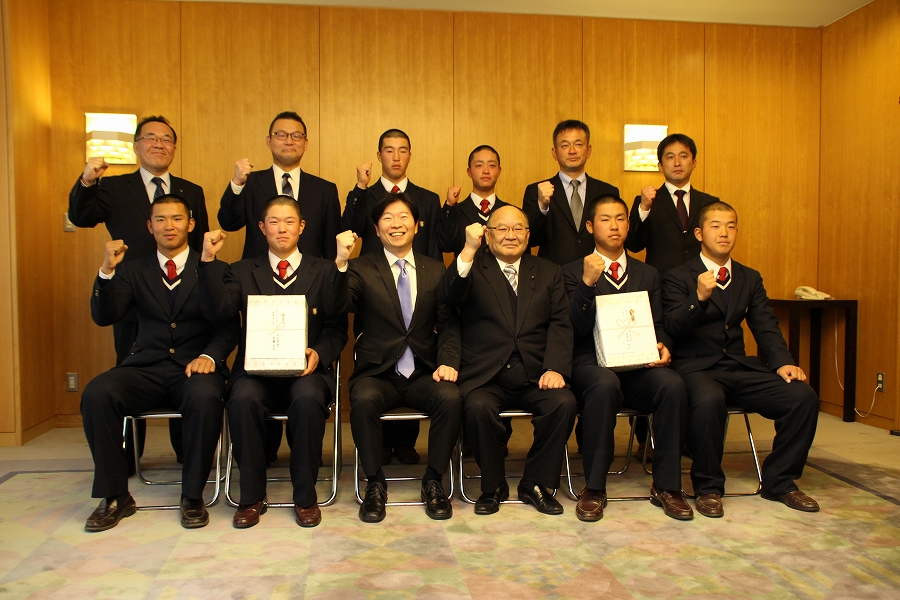 選抜高等学校野球大会出場校(おかやま山陽高等学校)表敬訪問 (10時30分 特別応接室) |