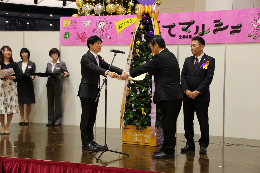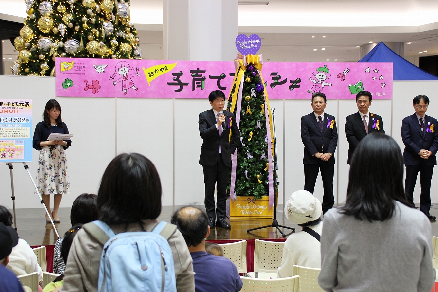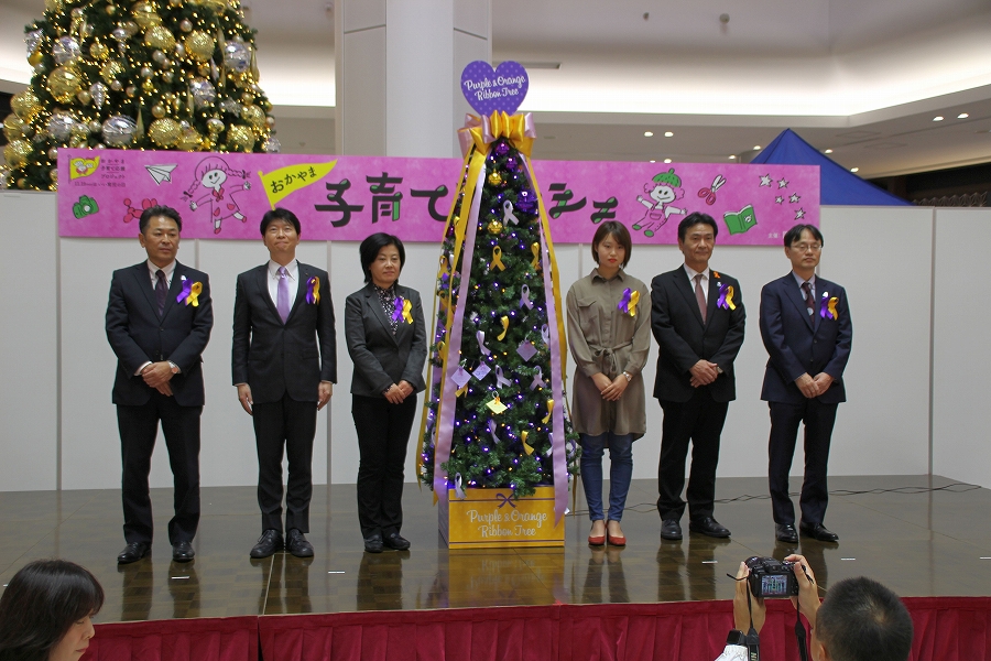 おかやま・子ども元気WAON寄付金贈呈式 パープルリボン&オレンジリボン☆ツリー設置式 (14時50分 イオンモール岡山) |