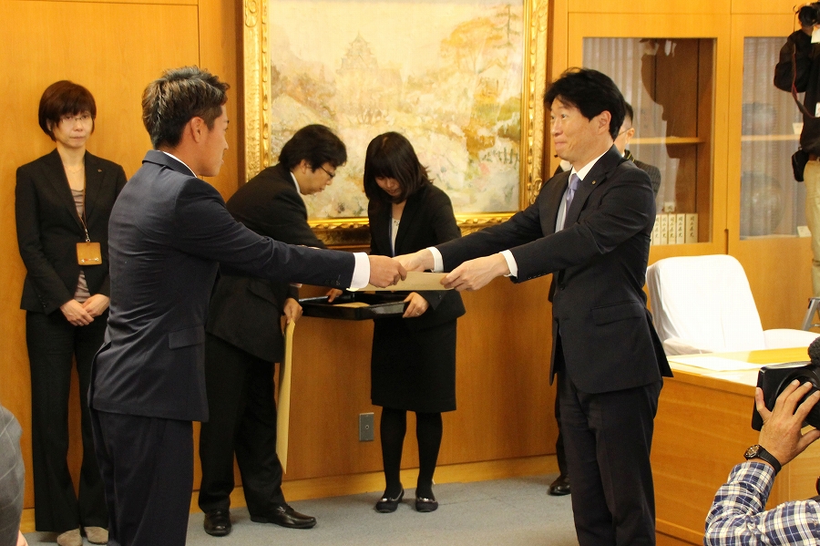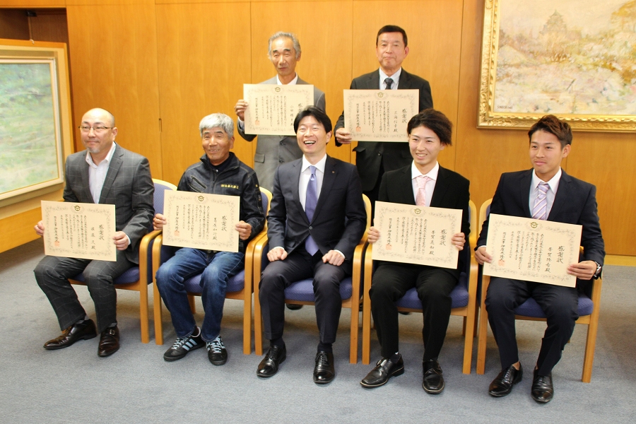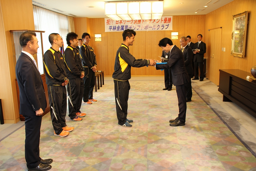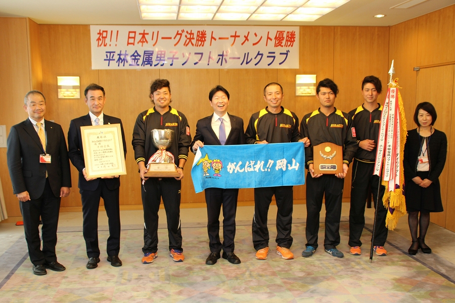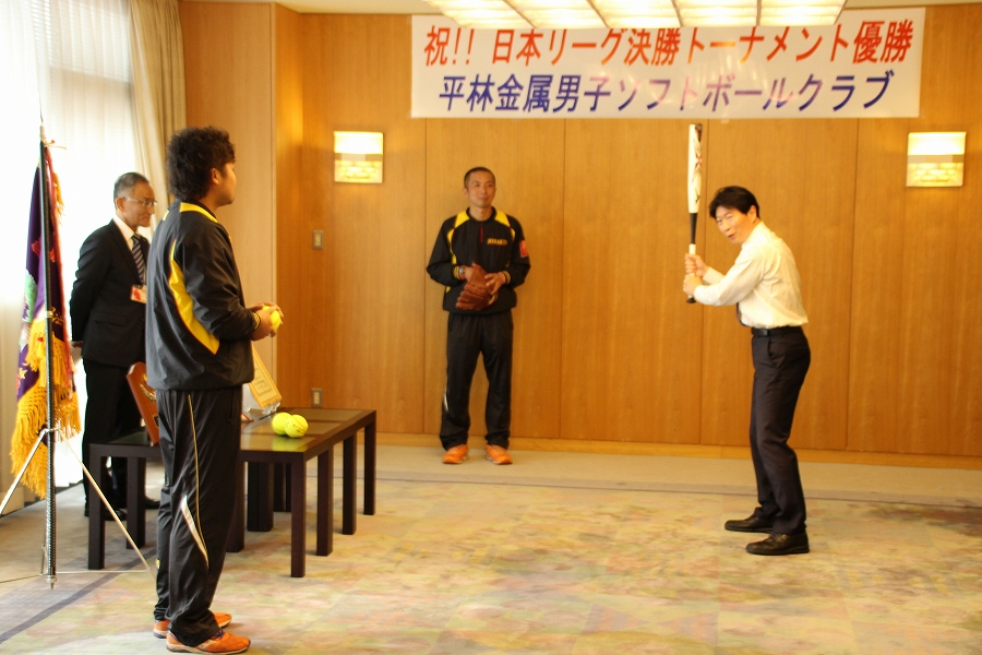 日本男子ソフトボールリーグ決勝トーナメント優勝チーム 〔平林金属男子ソフトボールクラブ〕表敬訪問 (11時30分 特別応接室) |