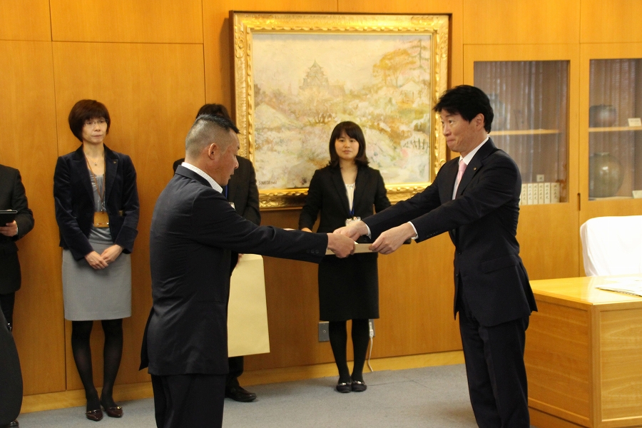 平成30年7月豪雨における被災者救助に対する感謝状贈呈式 (13時15分 知事室) |