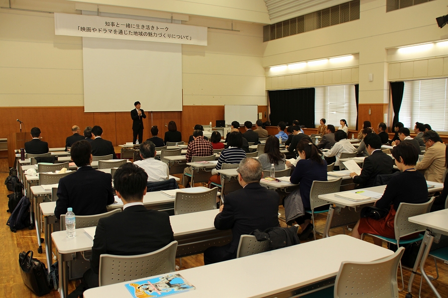 知事と一緒に生き活きトーク 【テーマ:映画やドラマを通じた地域の魅力づくり】 (14時00分 岡山国際交流センター) |