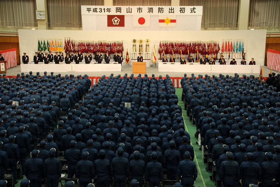 岡山市消防出初式 (9時00分 六番川水の公園体育館) |