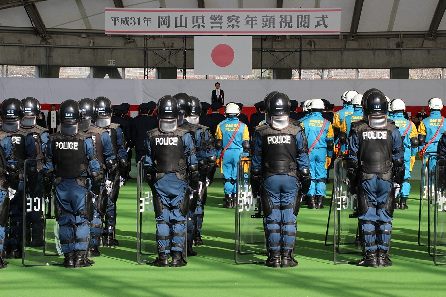岡山県警察年頭視閲式〔部隊巡閲〕 (10時00分 岡山ドーム) |