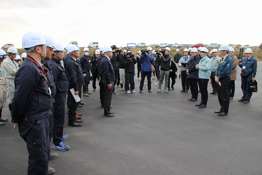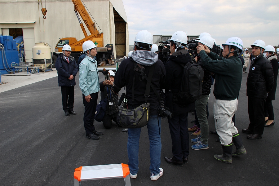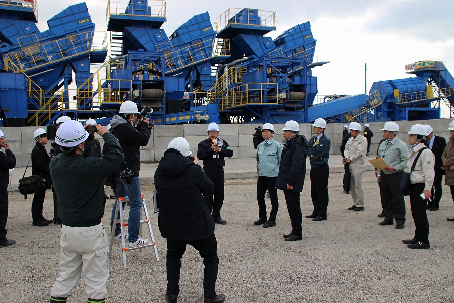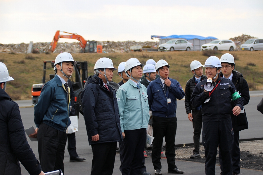 伊原木知事・蒲島熊本県知事による災害廃棄物中間処理施設等の現地視察 (14時00分 災害廃棄物二次仮置場(倉敷市水島川崎通)) |